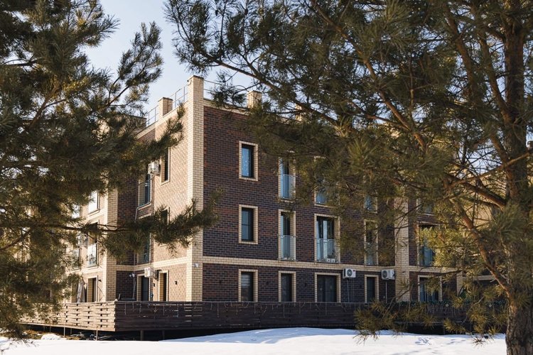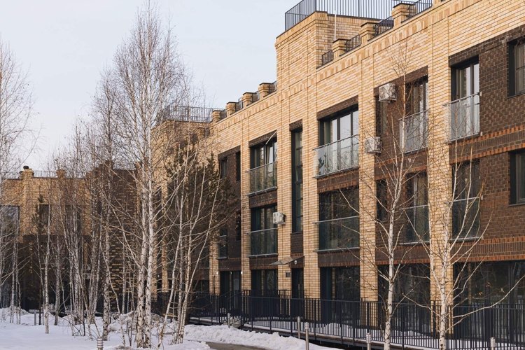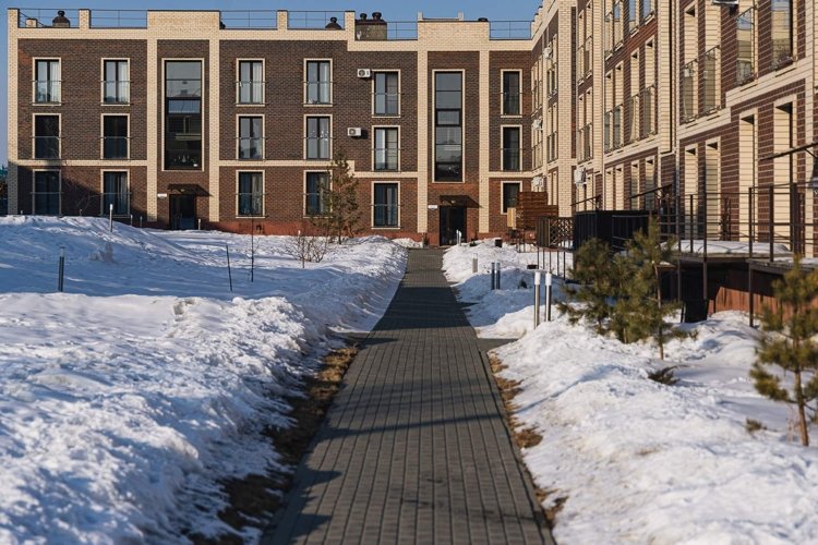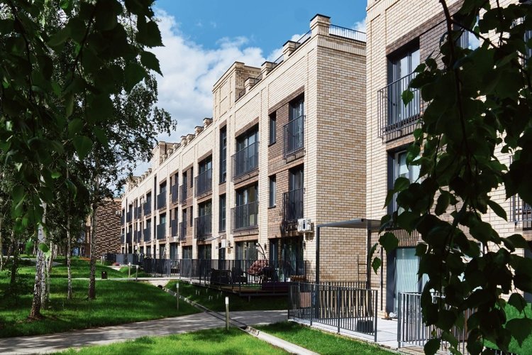 Микрорайон состоит из трехэтажных кирпичных домов, которые располагаются на разных уровнях. Внутри поселка использован метод квартальной застройки.