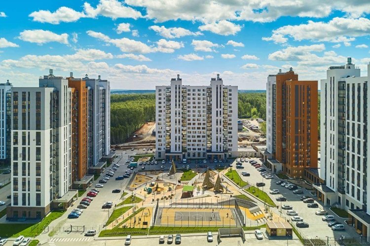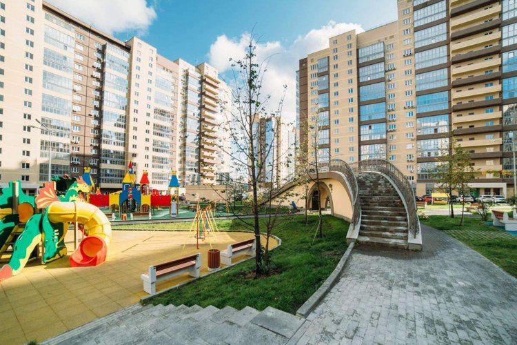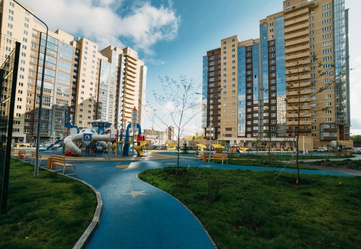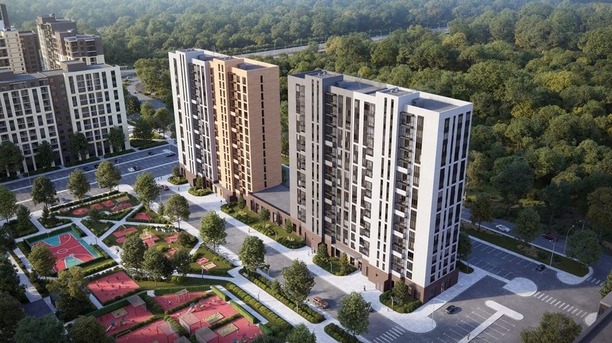 Комплекс состоит из двух микрорайонов, в которых есть все элементы комфортной среды: наземный и подземные паркинги, спортивные и детские площадки,