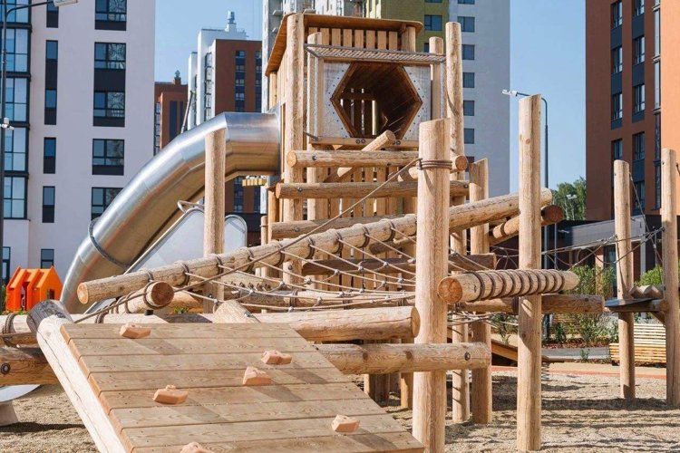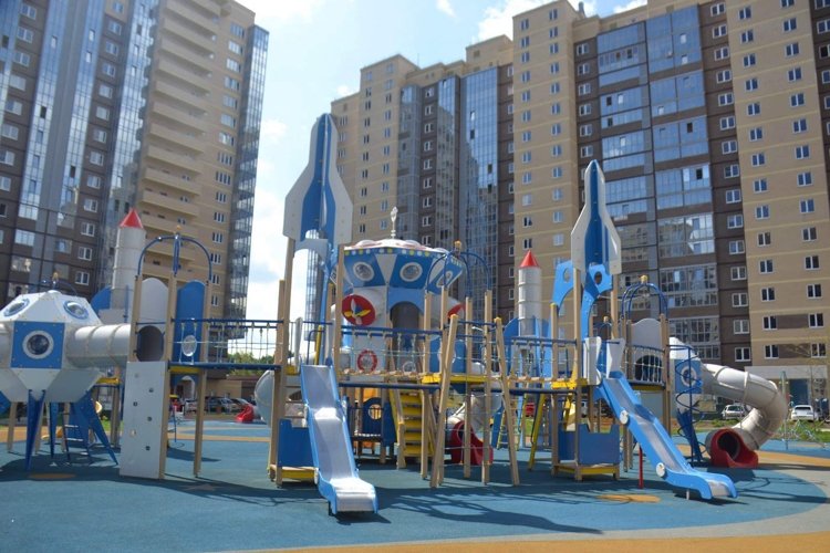 Спортивные и тематические детские площадки с «мягким» покрытием, элементы ландшафтного дизайна, спортивная площадка с трибунами, скейт-парк и прогулочные аллеи с дизайнерским освещением.