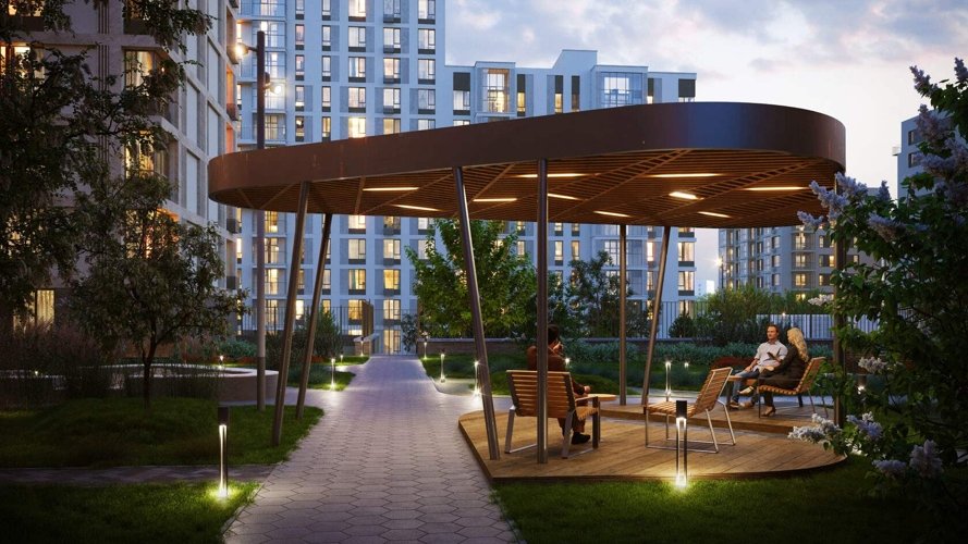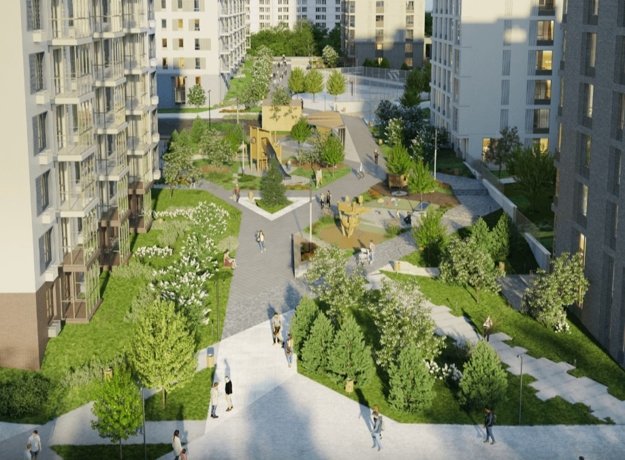 Дворы без машин и безбарьерный доступ будет и во дворах и в домах, а в разные сезоны года жителей порадует разнообразие зелёных насаждений и садовых растений.