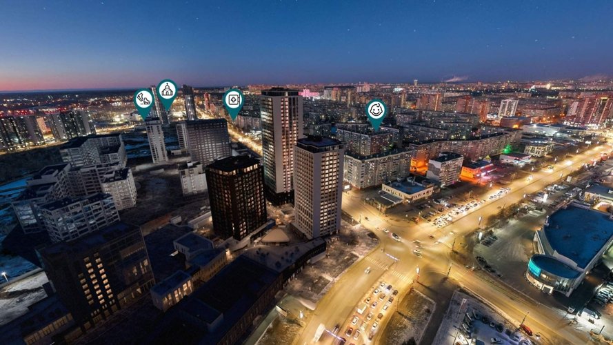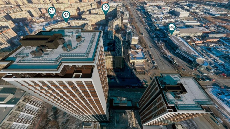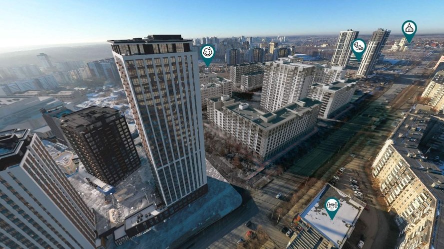 Комплекс состоит из трёх монолитно-каркасных домов высотой 17, 23 и 31 этаж. Он включает в себя разнообразные квартиры, от двухкомнатных квартир до просторных пентхаусов, что позволяет удовлетворить потребности разных семей, места общего пользования и кладовые, 2х уровневый подземный паркинг, тёплые балконы, продуманные дворы для всех возрастов.