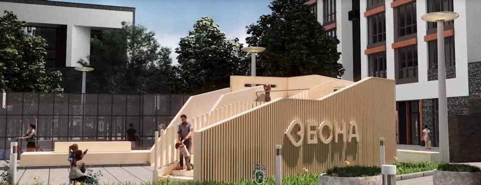 В комплексе будут предусмотрены тематические игровые площадки для детей разного возраста. Безопасные и комфортные зоны для малышей, развивающие и динамичные для детей постарше. А для занятий спортом будут установлены площадки для Воркаута.