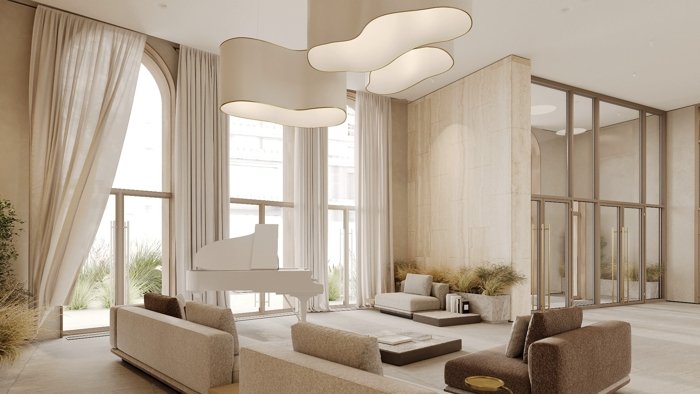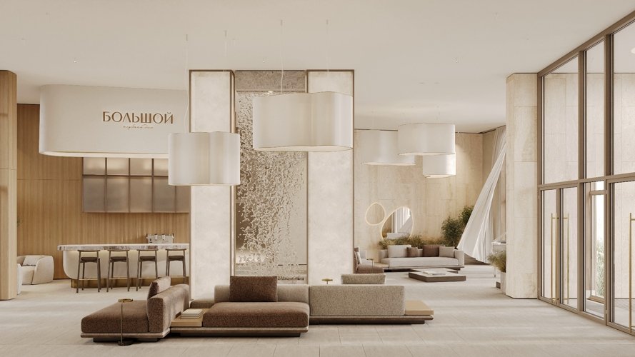 Гранд-лобби с мягкими зонами отдыха и роялем, приватные переговорные, детское игровое пространство, закрытый фитнес-спа, консьерж-сервис.